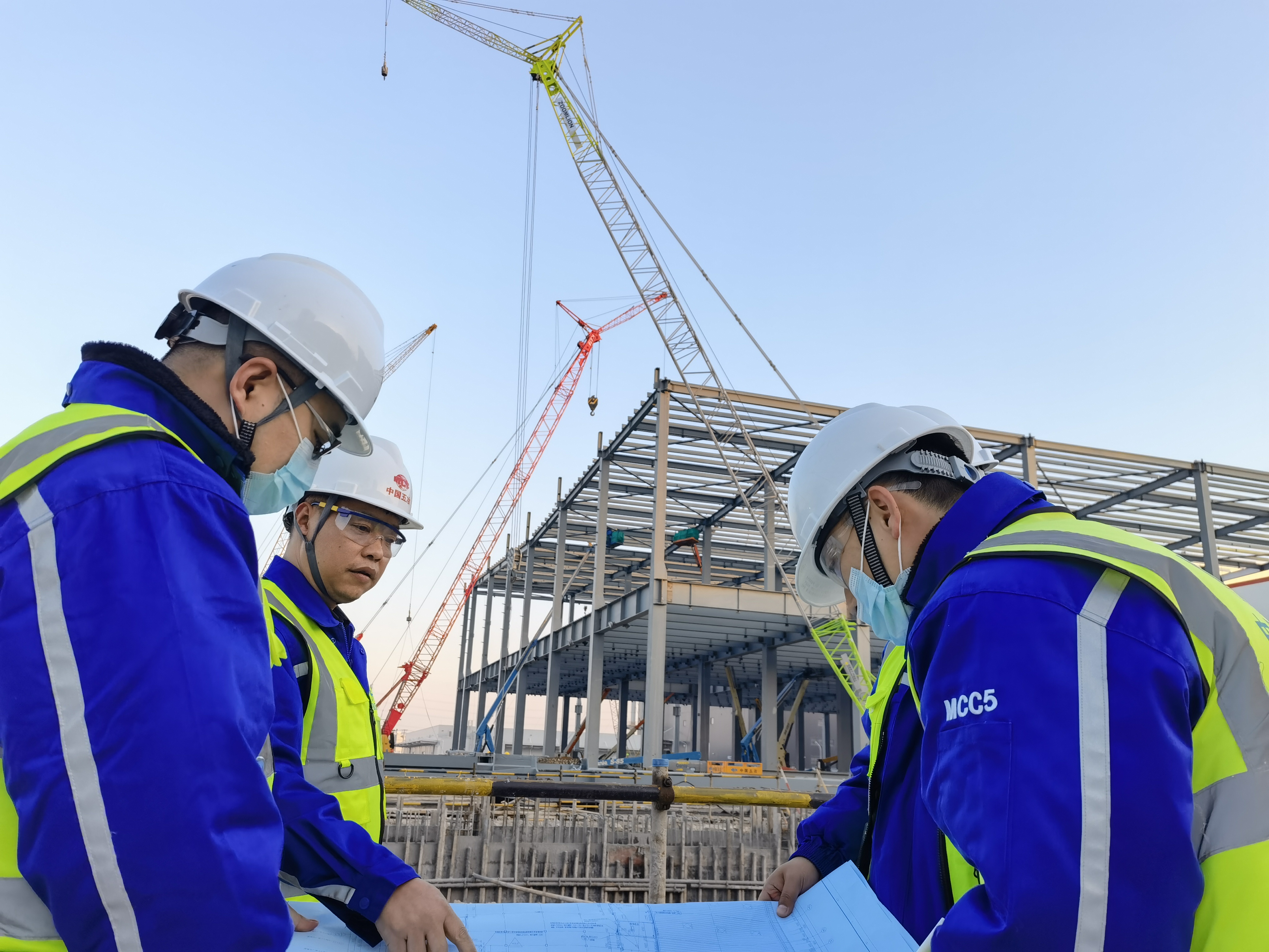 正式开工后,项目部按照各项任务倒排工期,细化时间节点,全力满足业主的进度要求。为实时掌控现场进度状况,黄能在保障施工安全和质量的前提下,组织管理人员通过精细管理和技术创新,在施工组织和技术保障上做文章,应用BIM和P6软件,实施可视化施工和数据量化监控管理,提高项目管理效率。面对复杂多变的施工情况,黄能坚持每晚组织召开“天天读”会议,对当天工作中遇到的问题进行复盘,组织讨论解决,并根据实际情况不断调整优化施工计划。项目初期由于配套设施尚不完善,施工现场时常会发生断电,夜晚的工地一片漆黑,黄能带头打开手机照明,和其他管理人员的点点灯光汇聚到一起,照亮了施工图纸和方案。临港夜晚的光亮虽然微小,但足以穿过黑夜,照亮整个项目走向明天的道路。在这样的氛围下,黄能和项目团队仅用时223天就完成了特斯拉上海超级工厂联合厂房5.1及附属工程的建设,实现了设备工艺进场并顺利投产,以最优工期获得了业主的高度认可和赞扬。