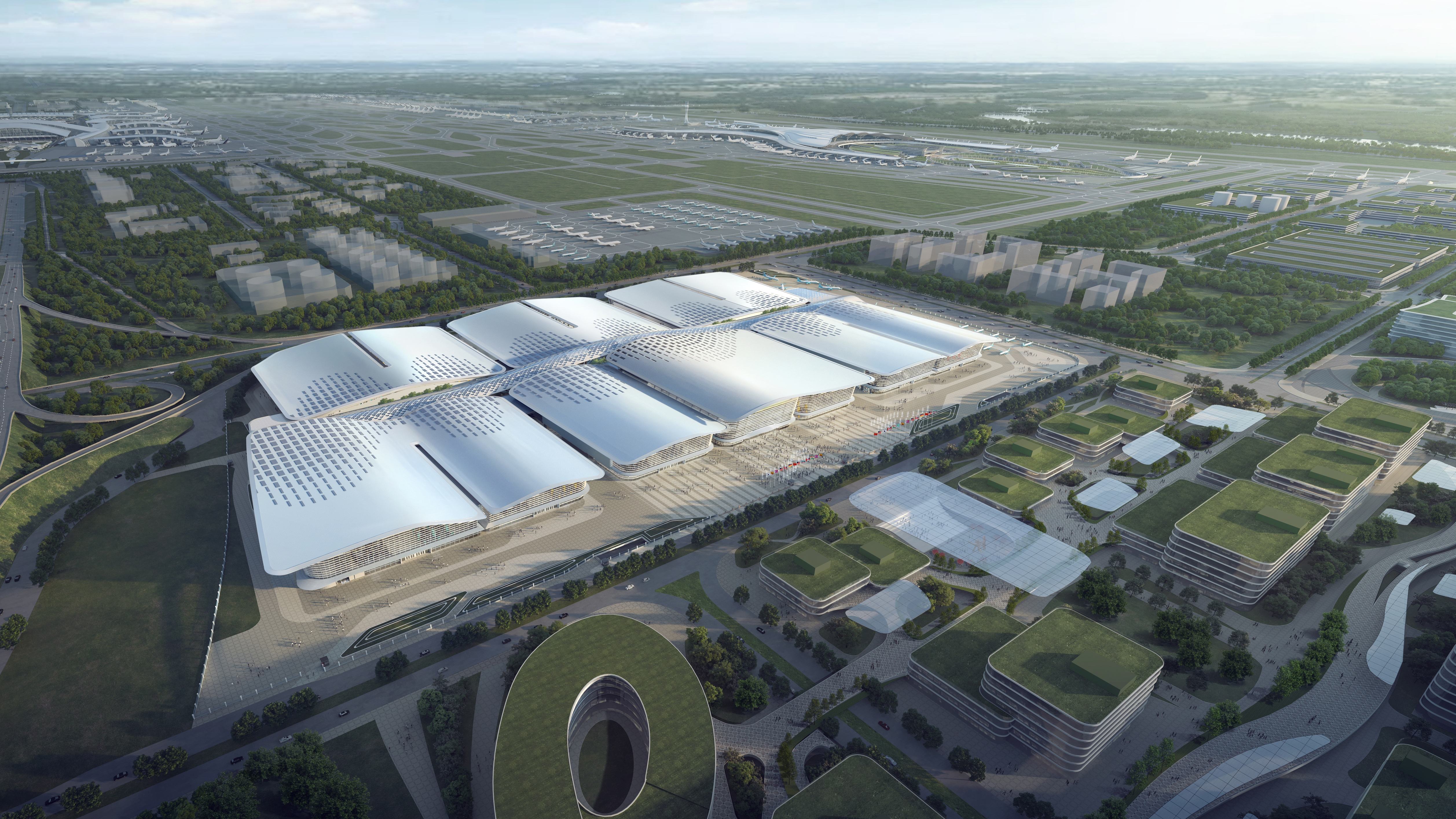广州空港经济区中央商务区会展中心二期项目地处空港经济区核心位置,紧邻华南地区最大、客流量全国第一的白云机场和湾区大型铁路枢纽广州北站,拥有全球“顶流”的交通枢纽优势。本项目作为粤港澳大湾区会展功能区标志性建筑群,总建筑面积约25.35万平方米,由8个场馆、主登录厅、中心通廊等组成,总用钢量约1.4万吨。据悉,项目建成后将成为广州能举办大型工业展的展馆,可有力拓展城市发展空间,带动区域内相关产业的蓬勃发展,对打造“国际会展之都”、助力国际消费中心城市建设具有重大意义。